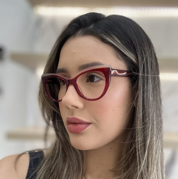 Óculos de grau Feminino Gatinho Acetato 5008 C4 vermelho