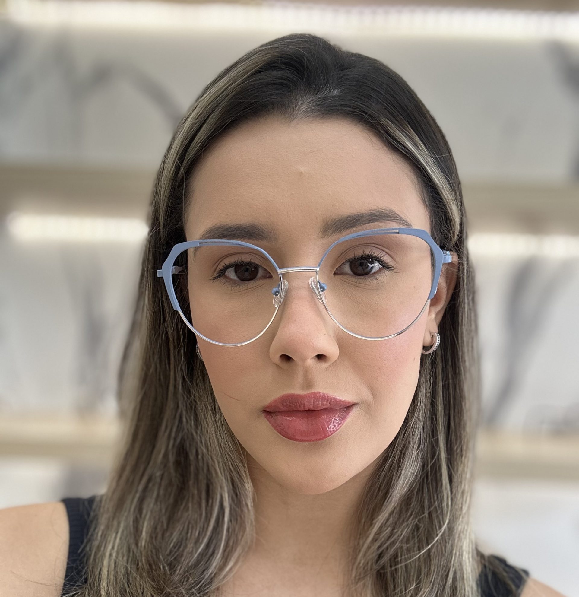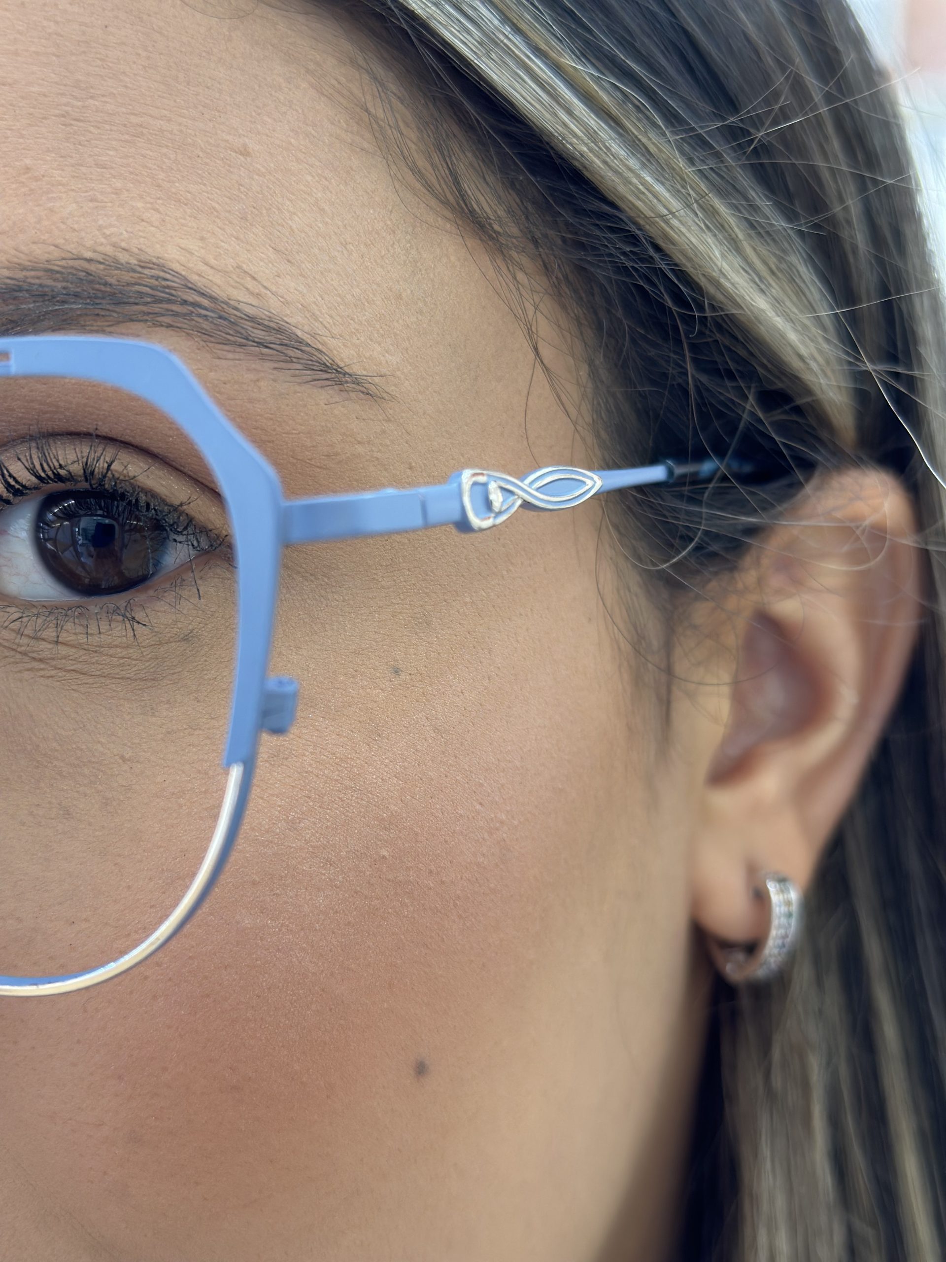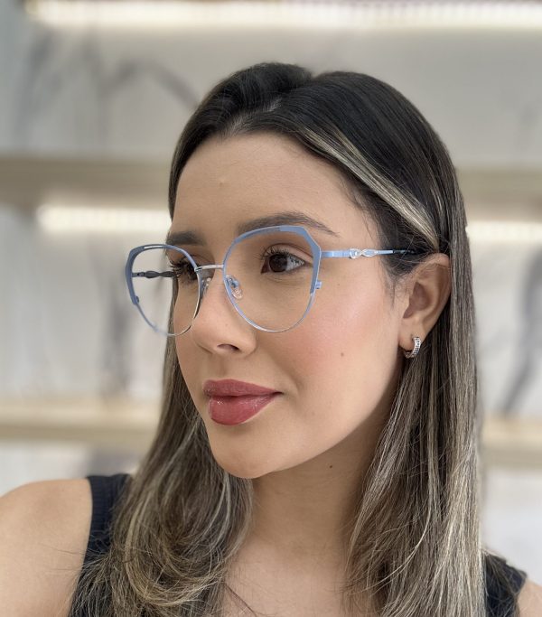 Óculos ideal para combinar estilos! Armação para óculos de grau redondo feminino azul é feito em metal leve e resistente. Apoio nasal de silicone, haste de metal e ponteira flexível. Aqui na ótica Kadiê você pode comprar os seus óculos com as lentes de grau e receber na sua casa pronto para usar. Basta selecionar a lente no pedido e nos enviar uma foto da sua receita e foto do seu rosto para medidas das lentes.